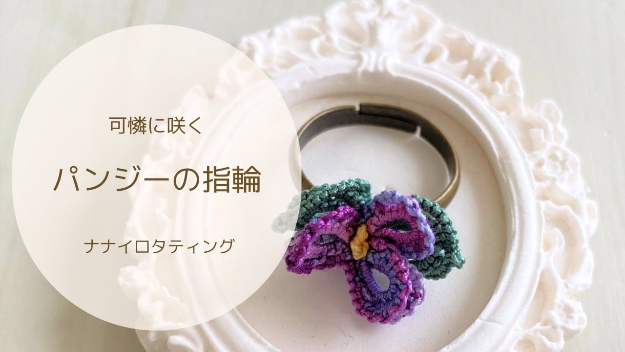 可憐に咲くパンジーの指輪キット|タティングレースで作る自分だけのアクセサリー(糸・リング台・テキスト付)