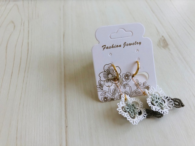 タティングレースという手法で北海道に咲く蝦夷の花を作っています。 軽やかで柔らかな色のコットン糸を使用しています。枯れないお花ですが、本物のように優しく扱っていただくと、いつまでも綺麗に咲いています。 エゾハナシノブは小さな青い花をいくつも咲かせます。 花言葉は「待ってます」 花のサイズ…約2cm コットン糸 金具から下の長さ…約4cm ゴールドメッキ どの角度でも小さな花がゆらゆらとみえます。